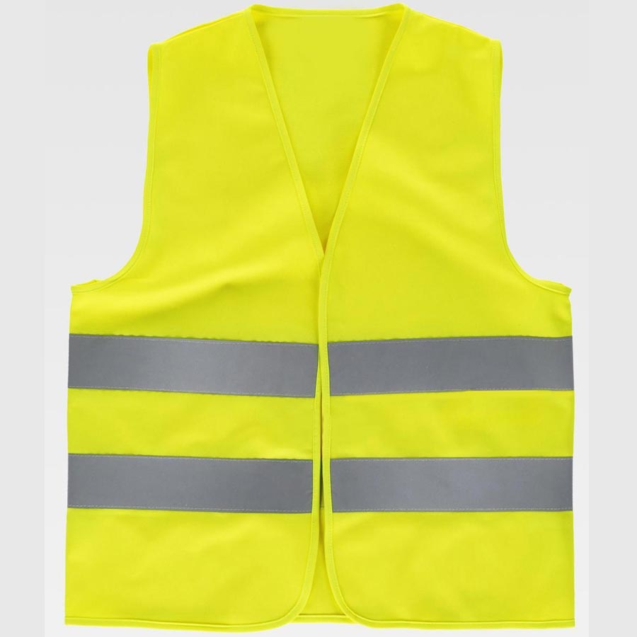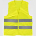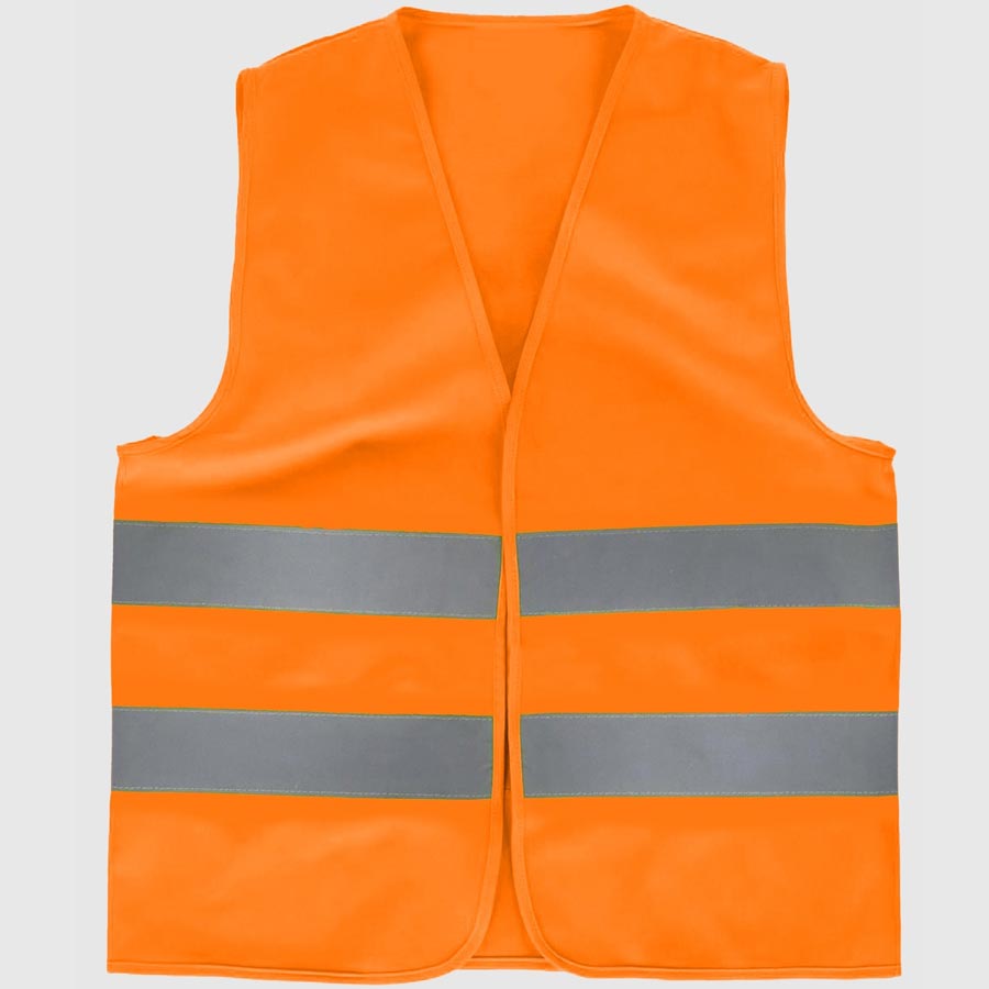 Kamizelka ostrzegawcza z dwoma poziomymi pasami odblaskowymi. Zapinana na rzep, idealna dla drogowców.